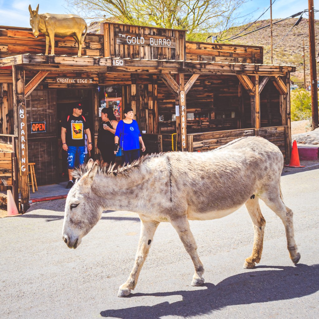 Today, descendants of both the original locals and burros roam the streets extracting bounty from the tourists who travel through on Route 66 or drive up from Lake Havasu for a visit.