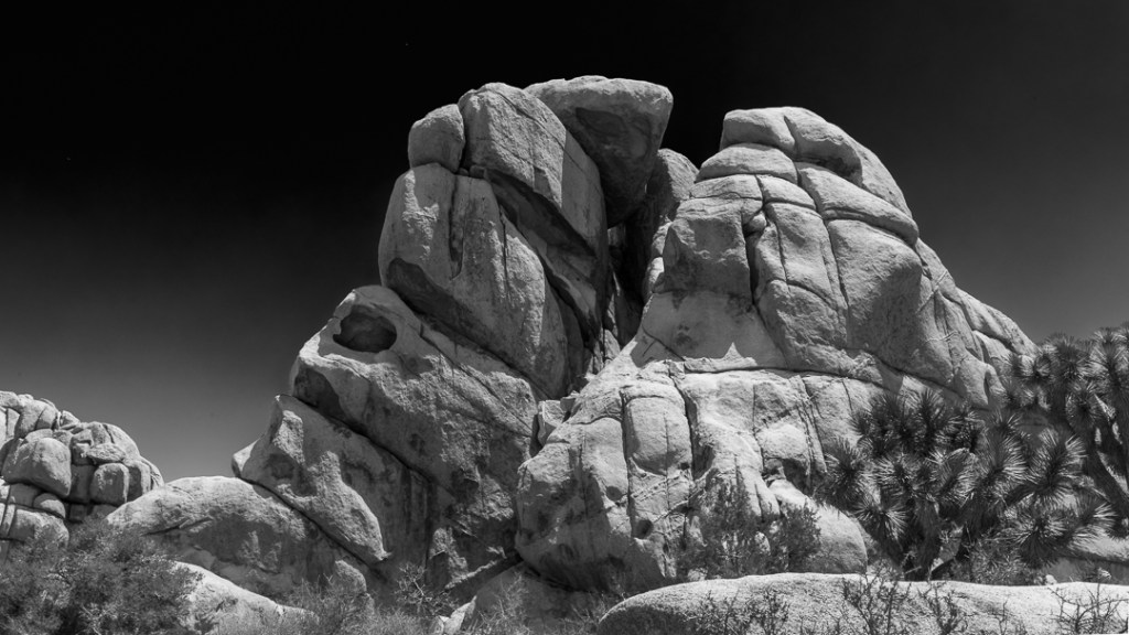 These massive boulders are part of what is believed to be a legendary cattle rustlers’ hideout. Today, the area supports healthy populations of Joshua Tree, pinyon, juniper and oak, along with mesquite, yucca, nolina, various cacti and dozens of other species.
