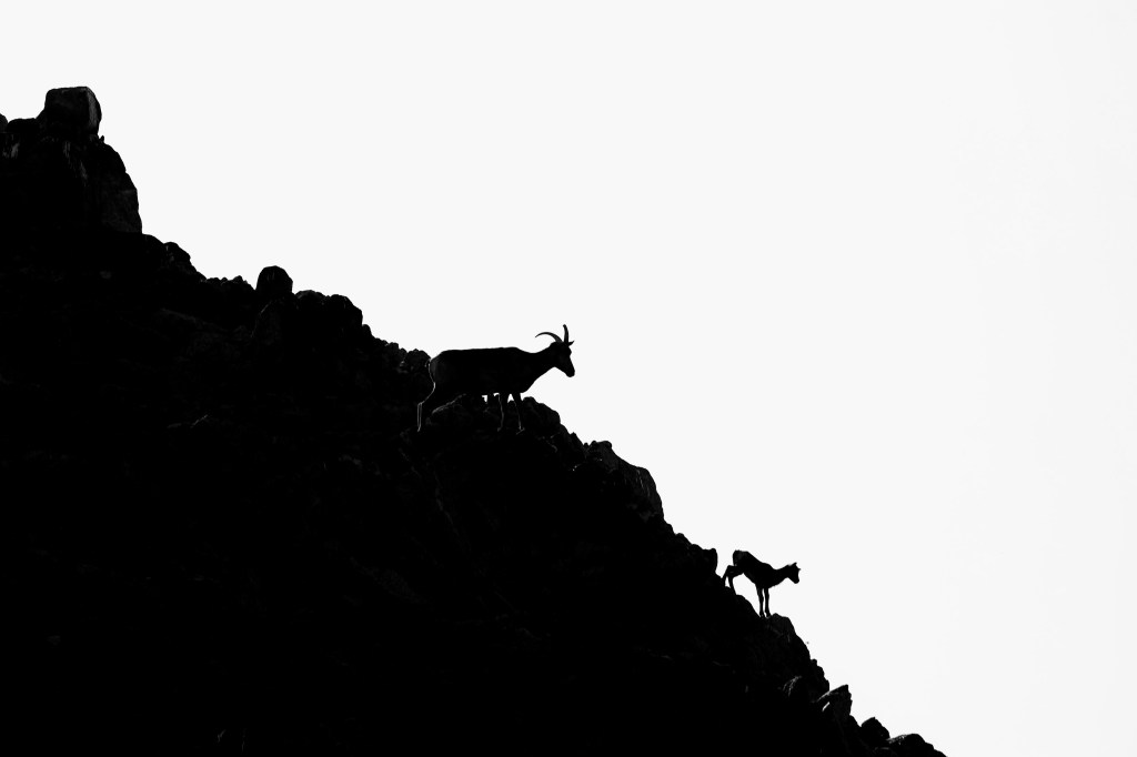Meanwhile, in the neighborhood a tiny Bighorn lamb learns the joy of climbing rocks under the watchful eye of his mother ewe.
