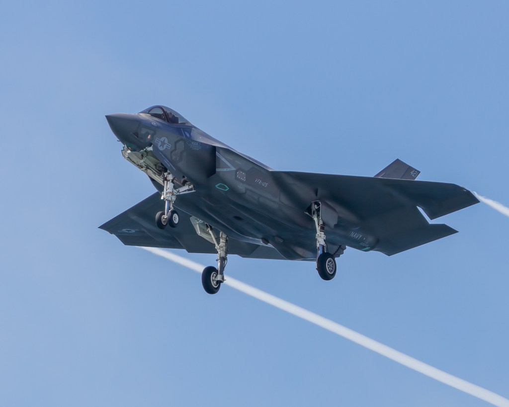 PhotographyThe “Rough Raiders” Strike Fighter Squadron (VFA-125) F35-C Lightning II January 2, 2023 editor The F35-C Lightning II… Courtesy of the “Rough Raiders” Strike Fighter Squadron (VFA-125), NAS Lemoore, California. Share this: Click to share on X (Opens in new window) X Click to share on Facebook (Opens in new window) Facebook Click to share on Pinterest (Opens in new window) Pinterest Click to share on Tumblr (Opens in new window) Tumblr Click to share on LinkedIn (Opens in new window) LinkedIn More Click to share on Reddit (Opens in new window) Reddit Click to share on Pocket (Opens in new window) Pocket Click to share on WhatsApp (Opens in new window) WhatsApp Click to share on Telegram (Opens in new window) Telegram Click to email a link to a friend (Opens in new window) Email Like Loading...