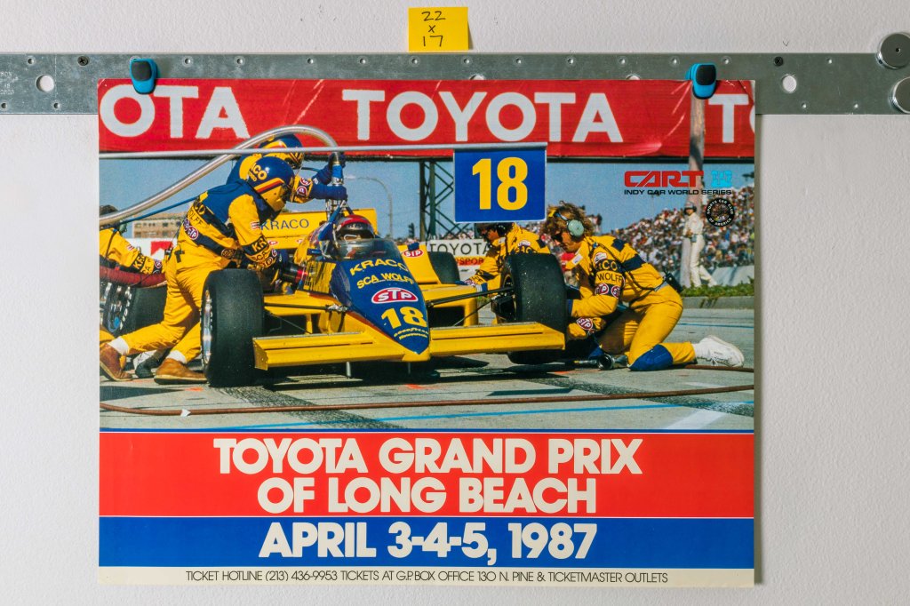 In 1975, at the age of 19, and before the first Long Beach Grand Prix, I joined the “Committee of 300” as a Founding Member. For the following twelve races, I co-hosted the world’s top motorsports journalists as volunteer coordinator in the Deadline & Working Press Room for the inaugural Formula 5000 race in 1975, followed by eight World Championship Formula One events and seven Indy Car races. Along the way, I collected a few leftovers after each race. Here are a few items that have been hidden away in the workshop.