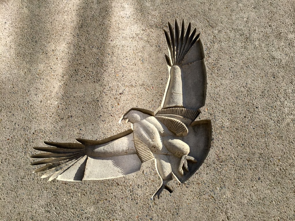 Several of VanSant’s intaglios, including this bird of prey, can be found incorporated into the walls of the headquarters building of the Irvine Company, located in Newport Center, Newport Beach, California.